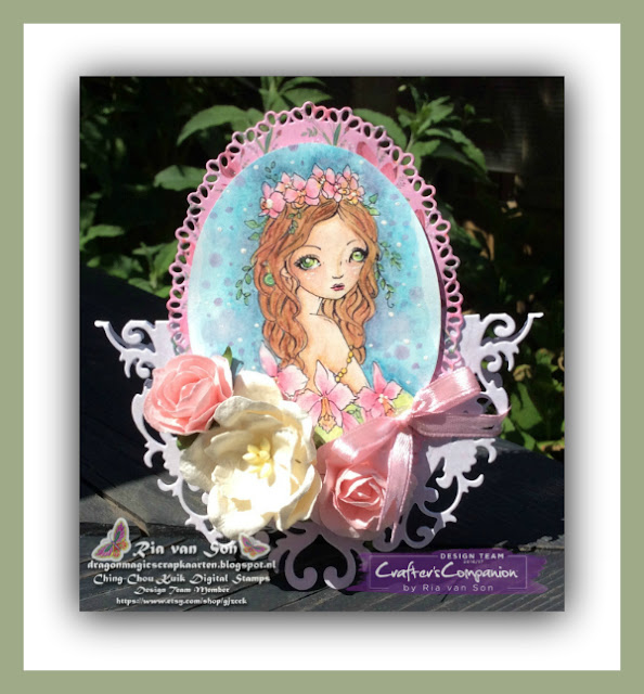 Vandaag heb ik dit kaartje gemaakt met de Mooie Orchid in Spring van Ching Chou Kuik gekleurd met de Spectrum Noir Aquablend Potloden....