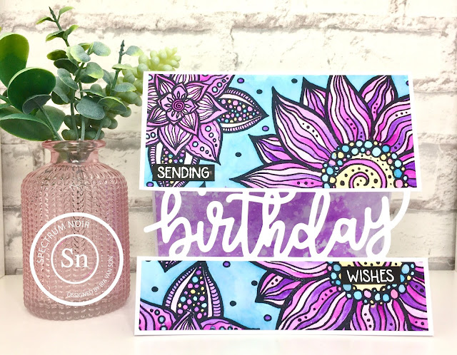 Is my card for this time. I created this card with the Curly Piglet bundle from Conie Fong. I colored the little piglets with the Spectrum Noir Illustrator markers and Colourblend pencils. The background is created with Crafter's Companion Chesterfield leather Large stencil. I used it on my Gelpress with the Spectrum Noir Opaque inkpads and white acrylic paint. For the Balloons I used the Ballon alphabet stamp and dies.